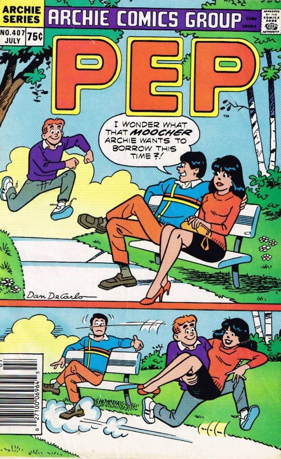 Pep #407, Archie. Reggie and Veronica really are made for each other, but it just goes to show he’s so insufferable she still prefers that sap Archie. Then again, it’s precisely because he is a sap.