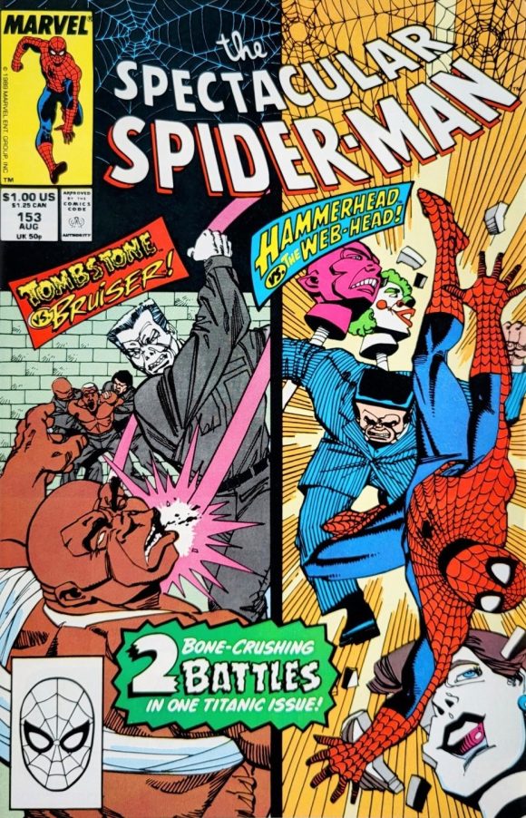 The Spectacular Spider-Man #153, Marvel. Spidey, Hammerhead, Tombstone, and the Chameleon, courtesy of Your Friendly Neighborhood Gerry Conway and Sal Buscema.