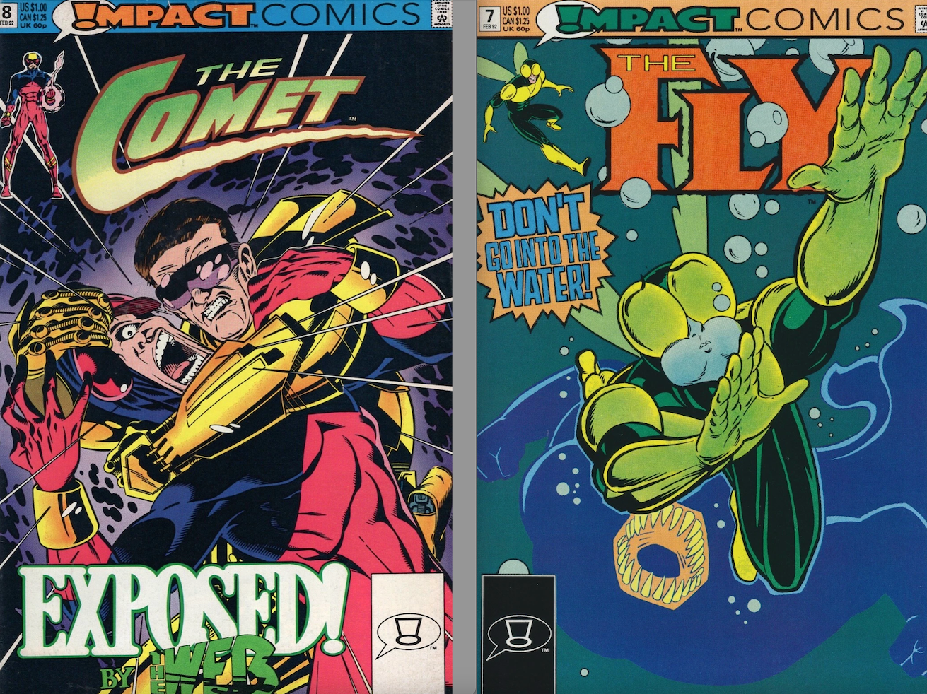 The Comet #8 and The Fly #7, DC. DC’s Mighty Crusaders-infused Impact Comics line escaped my notice when it came out, but had I been as taken with the MLJ/Archie heroes then as I am now, I’d have probably have given these a shot. The Comet actually lasted 18 issues and an annual. The Fly made it to 16. That’s kind of impressive for this sort of thing.
