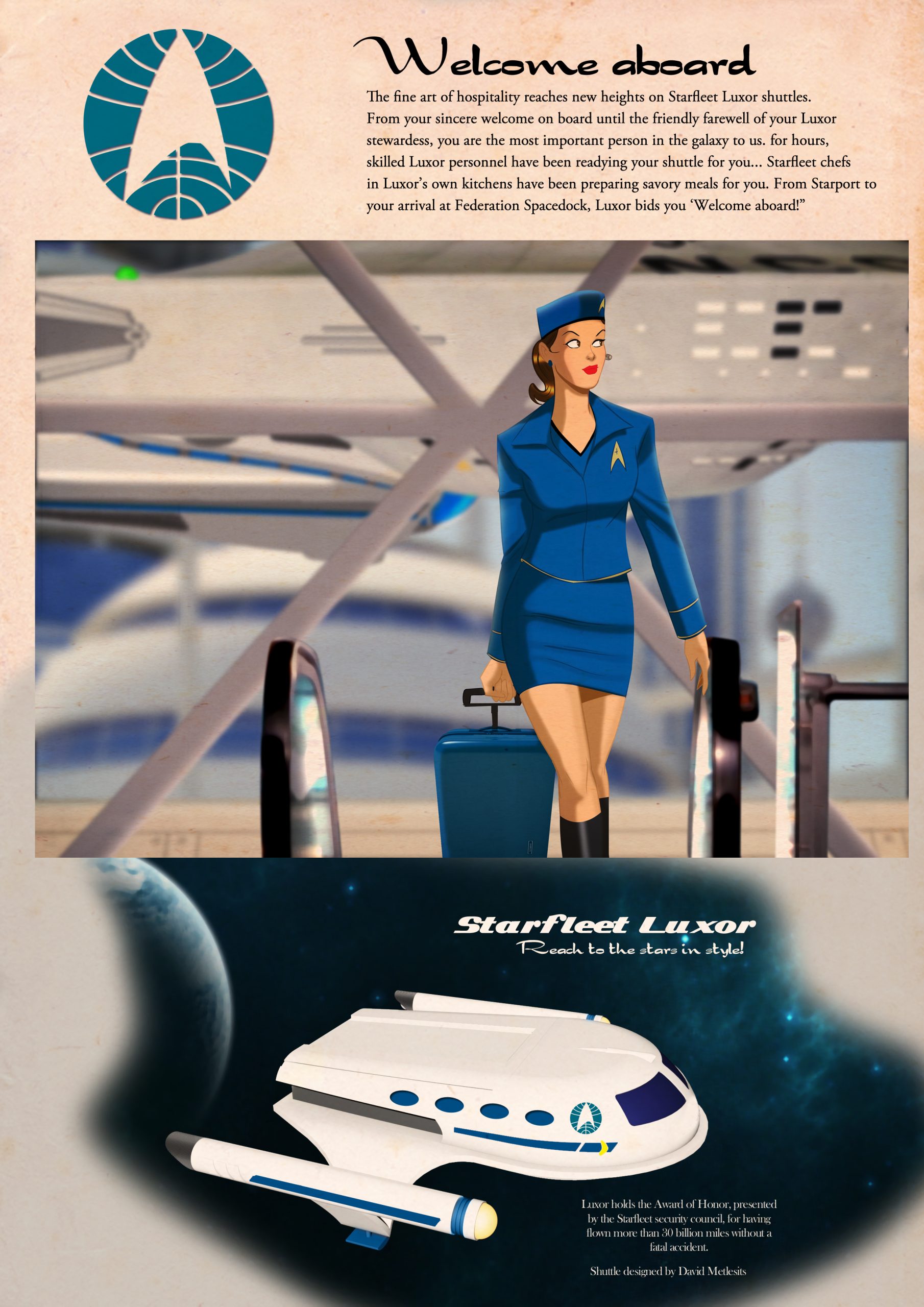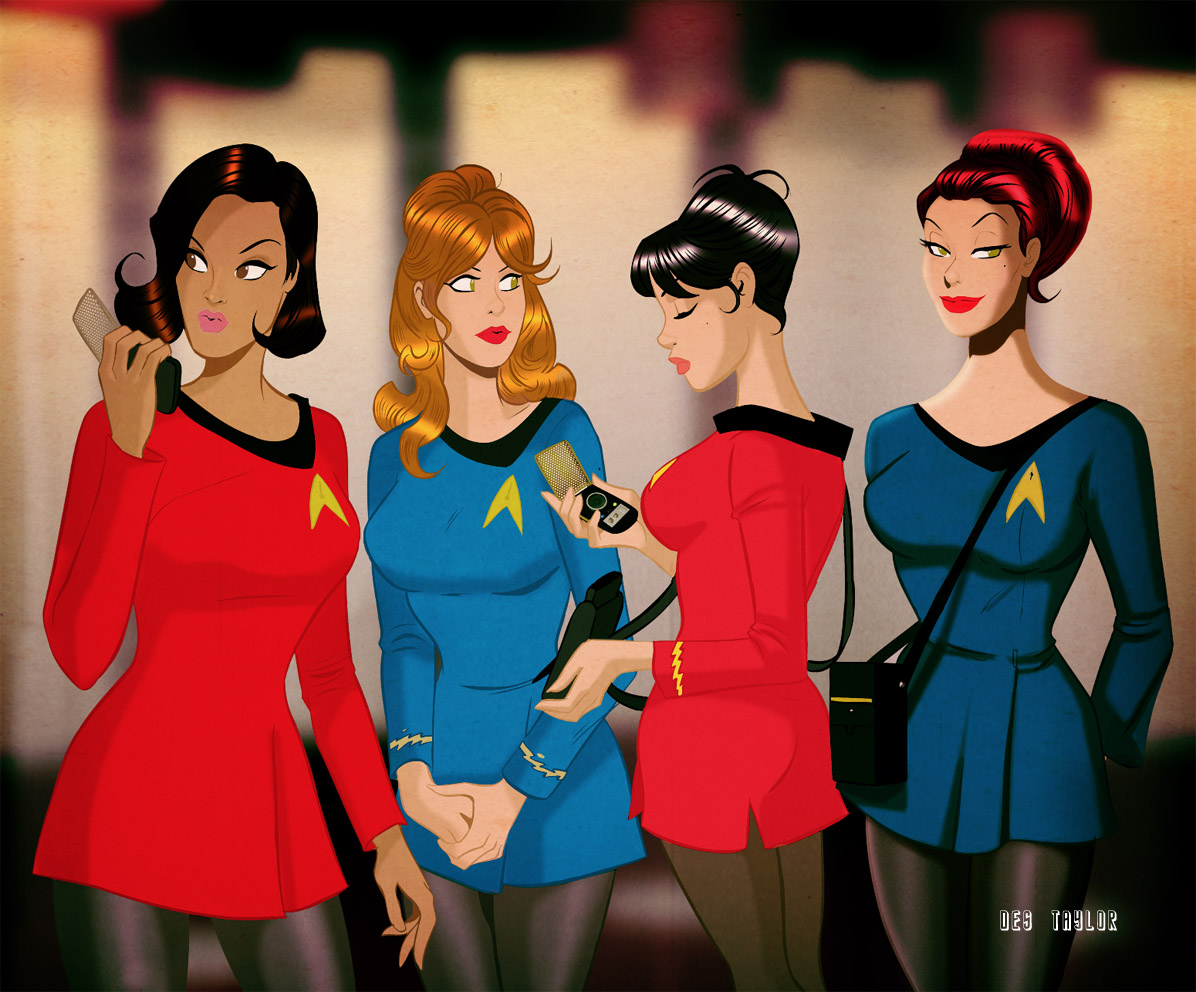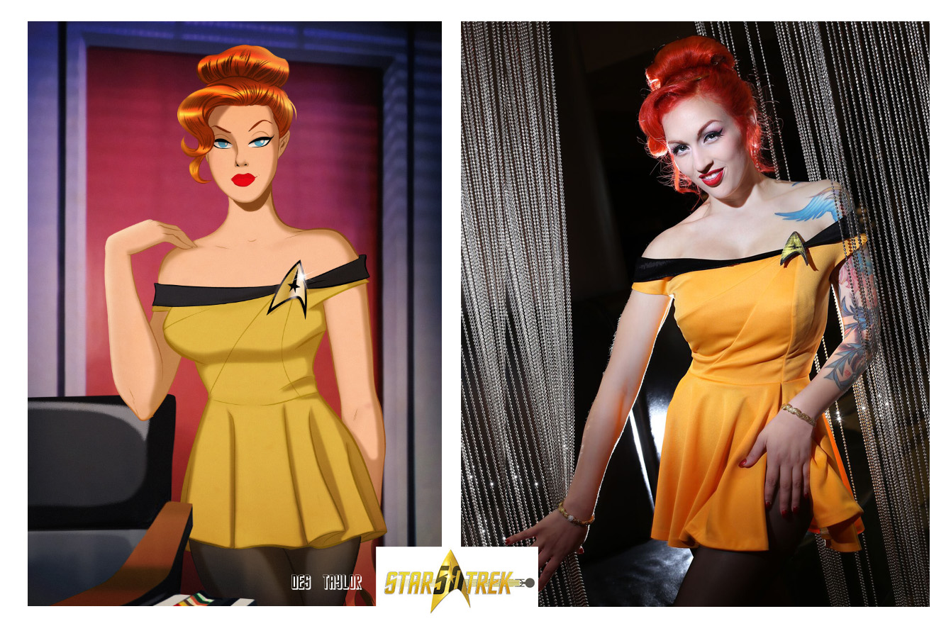 Des’ Star Trek art has also attracted real-world muses. Notable pin-up models MJ Becker and Stephanie Castro (above) have donned his designs, bringing his stylish Starfleet sirens to life.