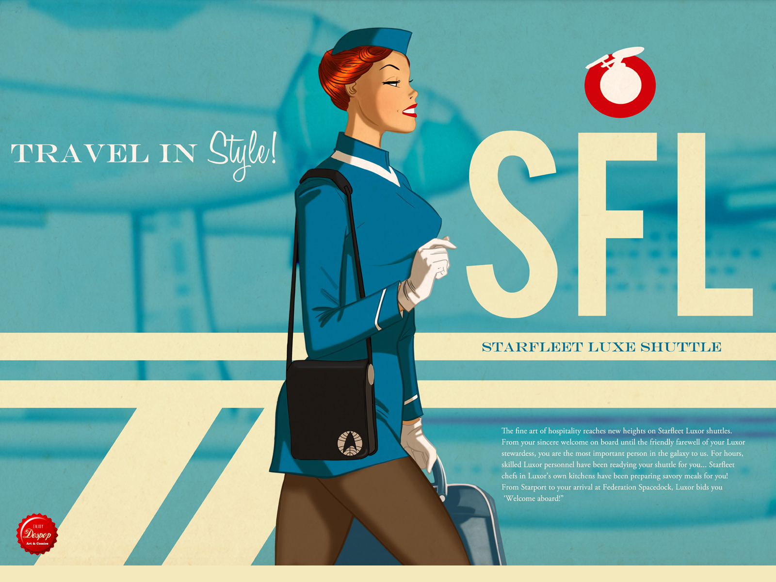 When it comes to blending classic pop culture with sleek pin-up style, few do it better than our very own Despop. He brings a bold, retro-futuristic take on the Starfleet aesthetic that pays homage to Gene Roddenberry’s universe, with a touch of silver-screen glamor.