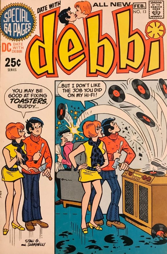 But after a few years, Stan had morphed the style of the Millie books into a more realistic “romance comic” mode. Then in 1967, Stan Lee had Goldberg go back to the more cartoony DeCarlo style, probably to compete better with Archie’s comics, which were red hot in the late ’60s. He continued working in that style on DC humor books such as Leave It to Binky and Date With Debbi in the early ’70s, and in the ’80s he also drew stories for DC’s Captain Carrot and His Amazing Zoo Crew in the style established by CC’s co-creator, Scott Shaw! So, I was well aware of Stan’s ability to draw in various styles and thought “Why not ask him to draw a Simpsons story?”