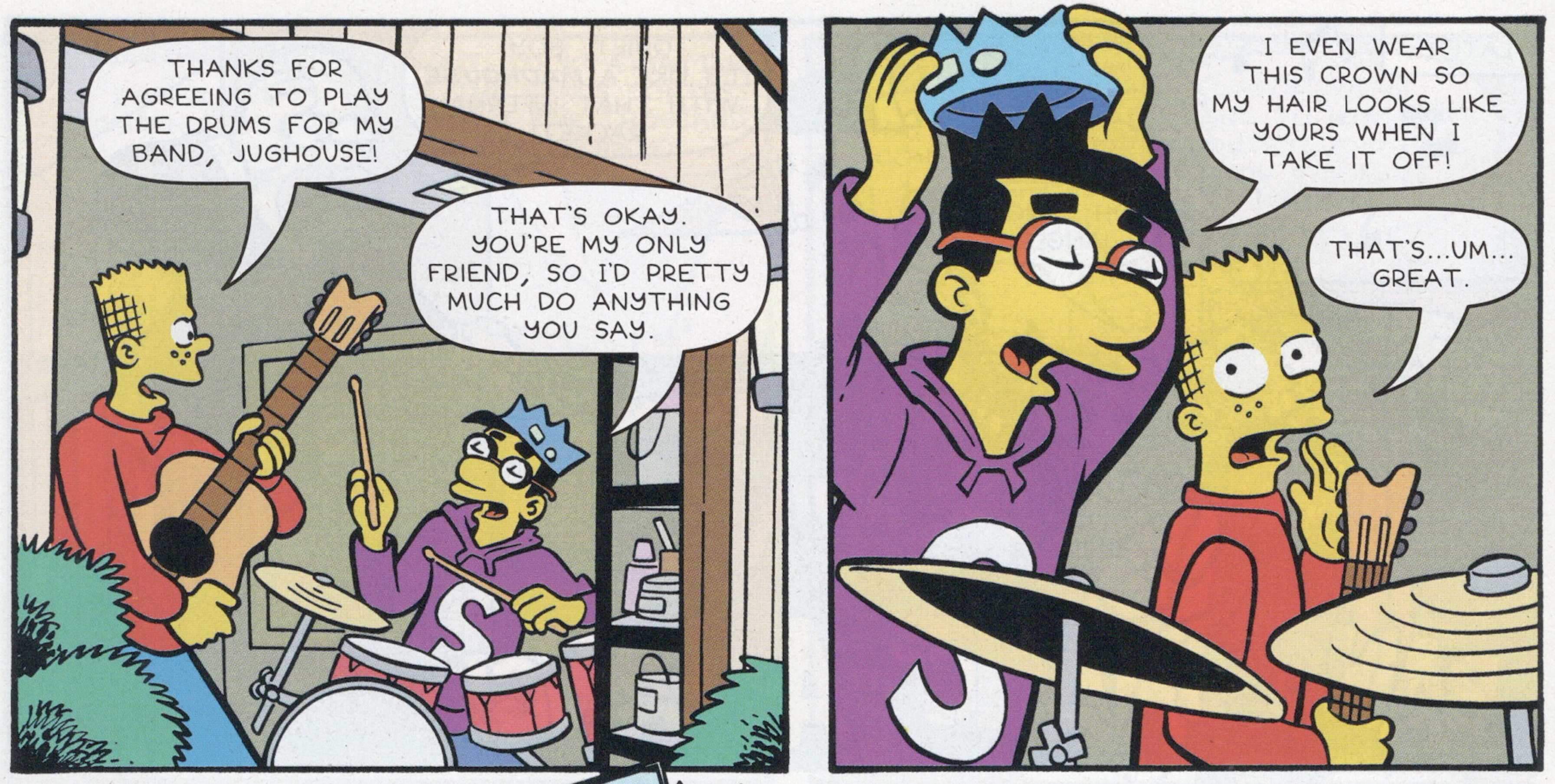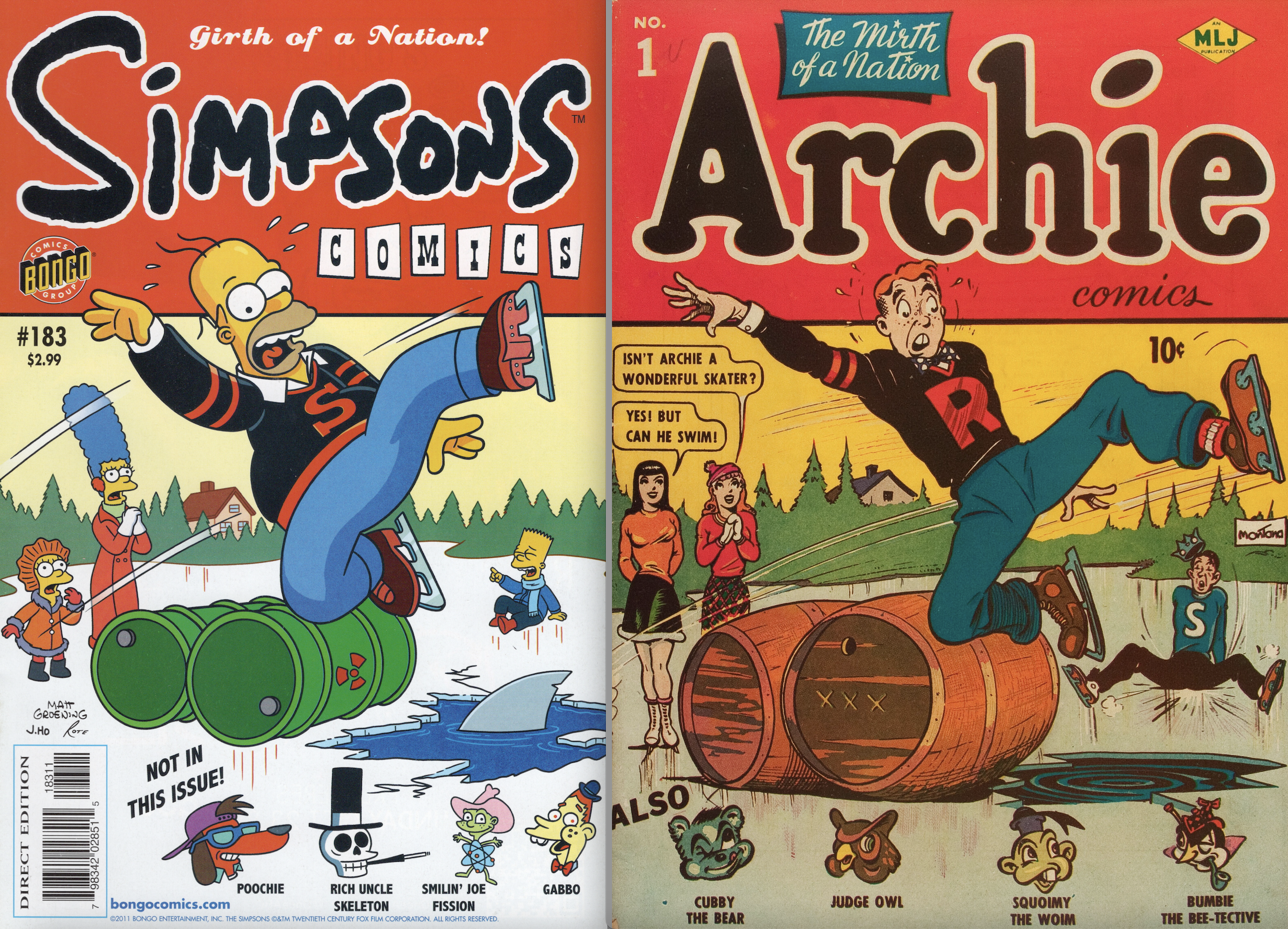 By the way, though I’ve drawn a lot of parody covers over the years, this one is not by me. It’s the brilliant work of Bongo mainstays Jason Ho and Mike Rote, art-directed by Nathan Kane!