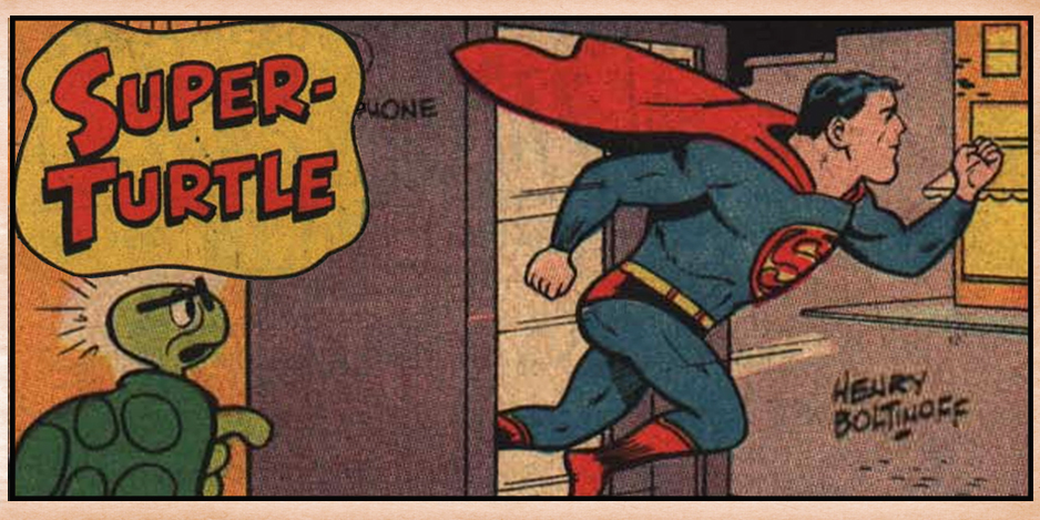 And what kind of celebration would it be without including, as a 13th Dimension lagniappe, Super-Turtle’s near miss meeting with Superman?!?