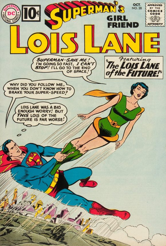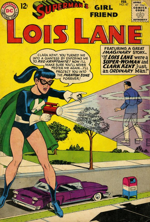 Krypton Girl (Superman’s Girl Friend Lois Lane #47, 1964, DC). I love the Silver Age of Comics. Only then could we have gotten a computer-generated “alternate” Lois Lane where she’s the one from Krypton with super powers, and Clark Kent’s the annoying person in her life. And that costume was to die for. I wish we could have just a little Silver Age back in our modern comics.