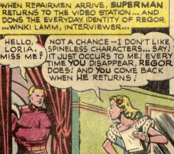 Loria Rode (Superman #58, 1949, DC). On the far-off planet Uuz, the mighty hero Regor, a Superman wannabe, had to have his own Lois Lane, of course, and thus there was the beautiful reporter Loria Rode to fill the role. There’s just something about the name “Loria Rode” that’s just too good to let go to waste, as it has for over 75 years now.
