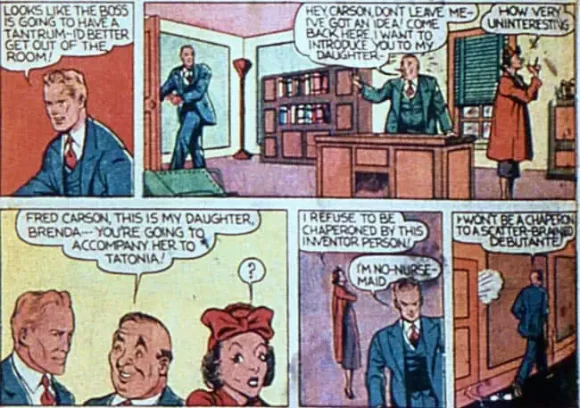 Brenda/Nora Hastings (Wonder Comics #1, 1939, Fox). Debuting exactly 11 months after her progenitor, Ms. Hastings is, unless I’m wrong, the very first Lois Lane analogue in comics history. Why the two first names? Ask creator Will Eisner — he waffled on the Red Cross volunteer’s moniker about halfway through her first and only story.
