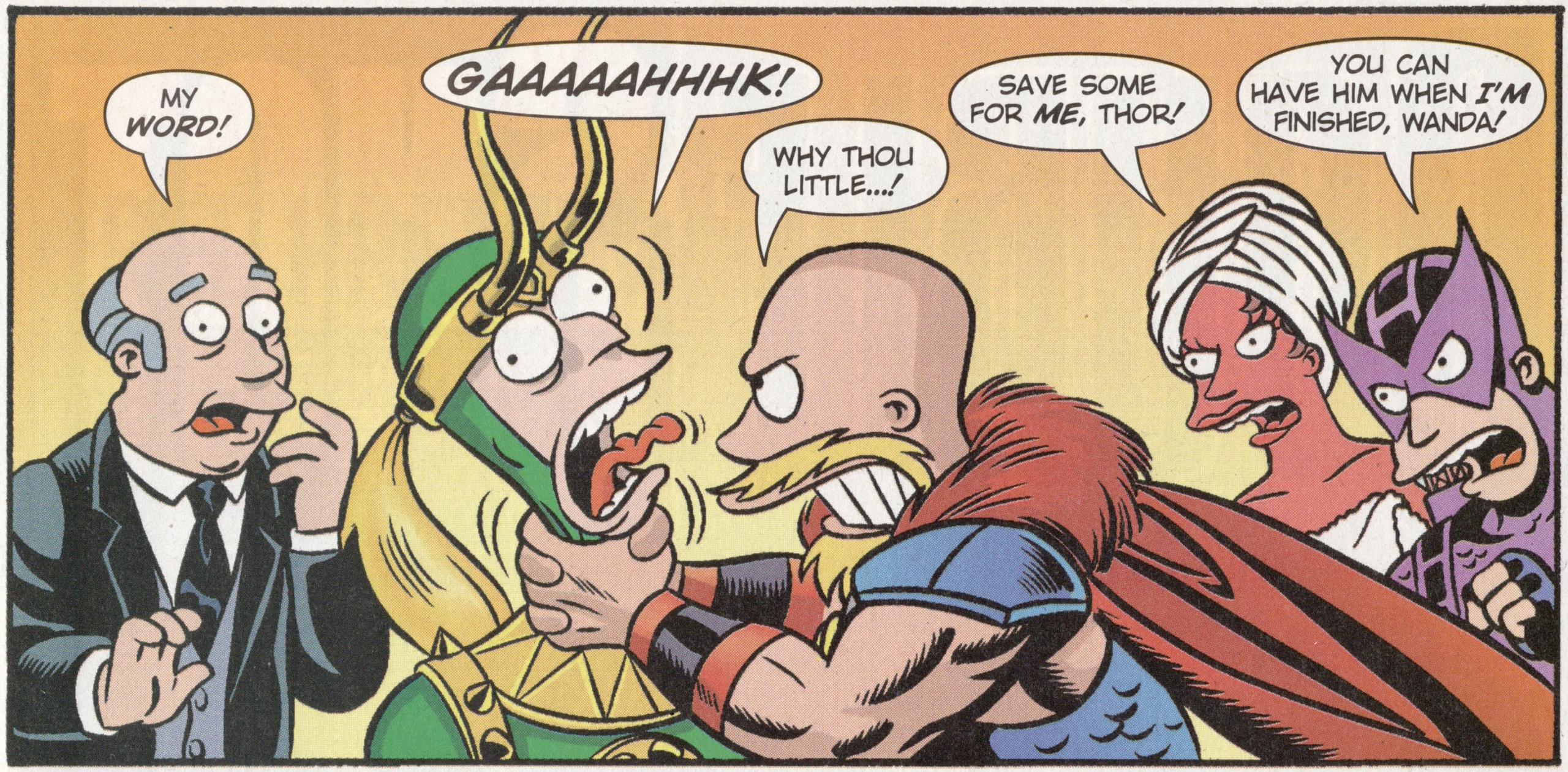 Well, that let the air right out of my big, happy, Marvel balloon. Regretfully, I didn’t feel I had the right to co-opt The Simpsons style for another publisher, so I had to decline the invitation.