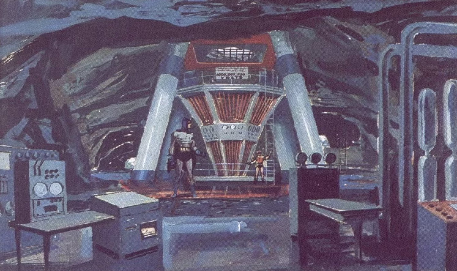 This page also describes in detail, the elements of the Batcave, “Where Day and Night Are Same” for the first time. The show’s art director, A. Leslie Thomas envisioned the Batcave from this description, and created these wonderful concept sketches.