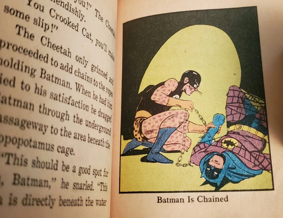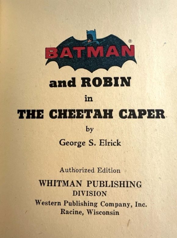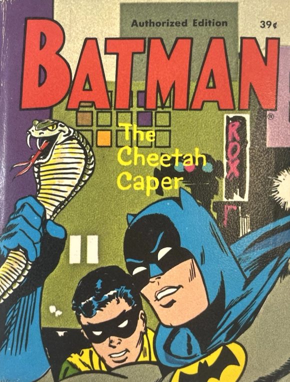 I don’t know how old I was, I just know I was young. Very young. I do know I was at a Howard Johnson’s and I saw it through the glass of the restaurant’s gift counter, on the bottom shelf: Batman: The Cheetah Caper, a Whitman Big Little Book with an enticing cover showing the Dynamic Duo wrangling a cobra, in front of a stylized, mid-century Gotham City backdrop.