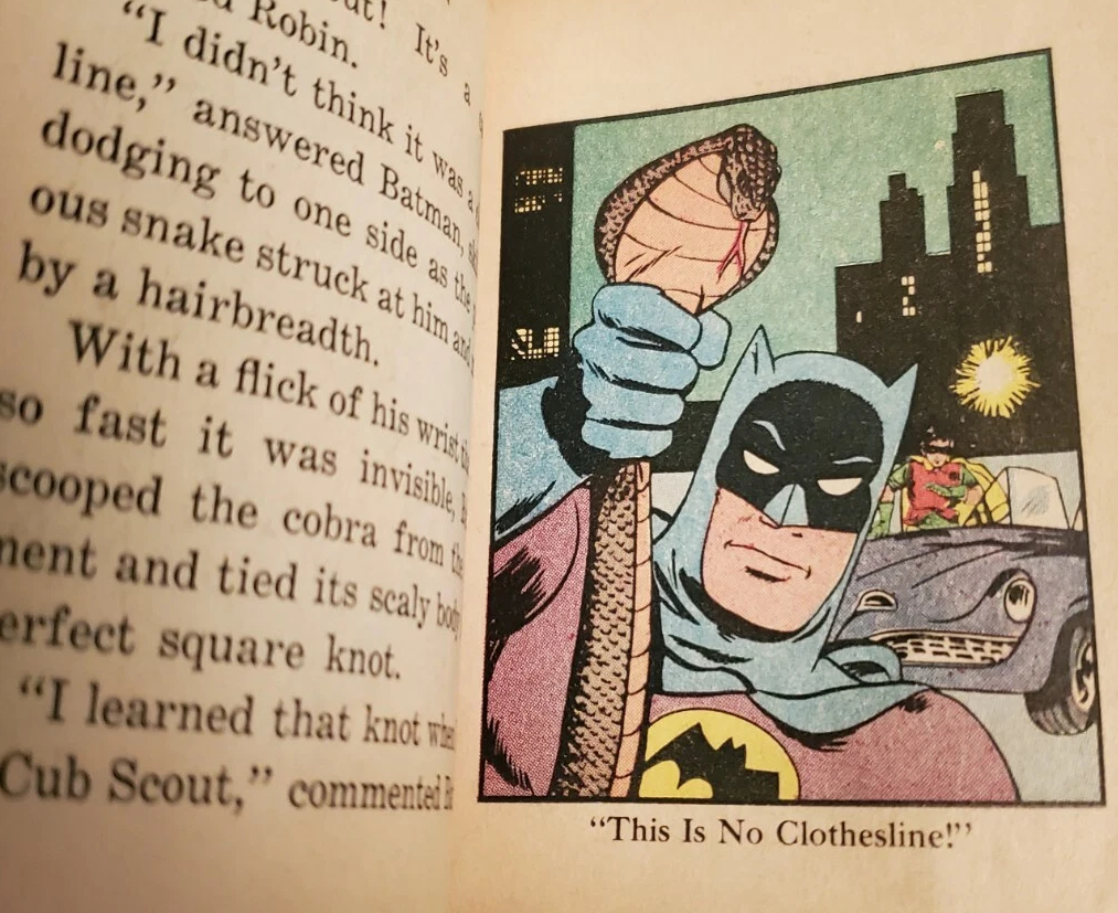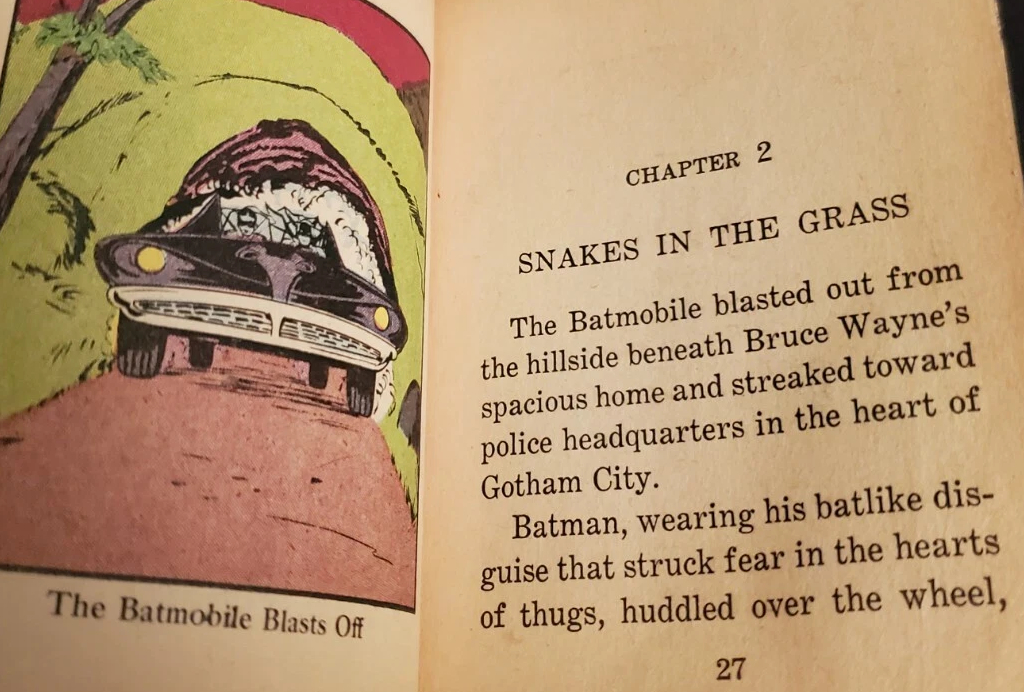 It’s no wonder that I read it — or had it read to me — so many times that the cover fell off. (My Dad replaced it with one made of light blue plastic and silver duct tape, a large bat that said “BATMAN” adorning the front.