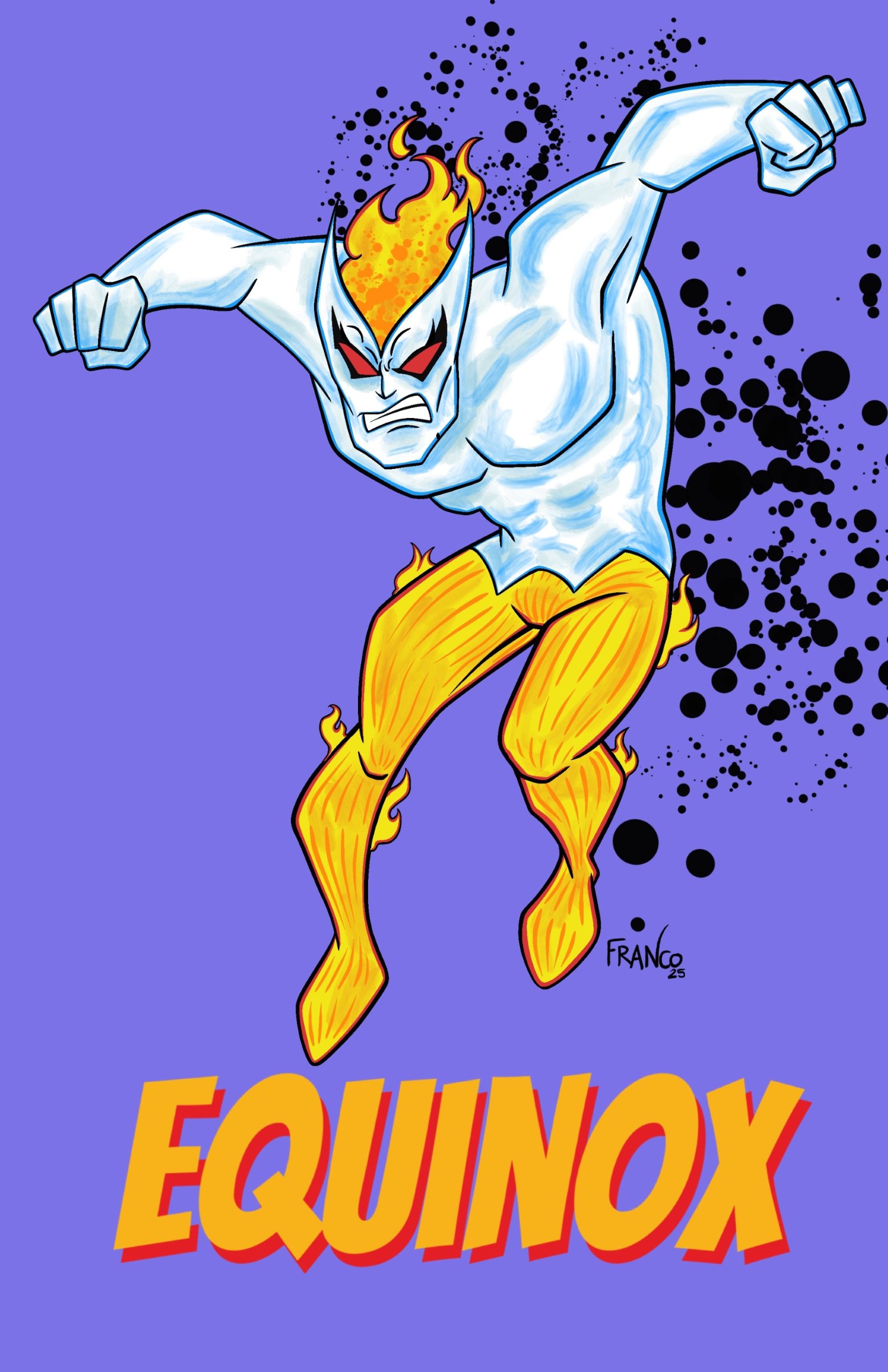 Had to look him up online again.  This is what popped up first: Terry Sorenson, also known as Equinox, the Thermodynamic Man, a guy with all the powers of Iceman and the Human Torch. In the past he’s been both a hero and a villain. So it can be a little hard to gauge his temperature.