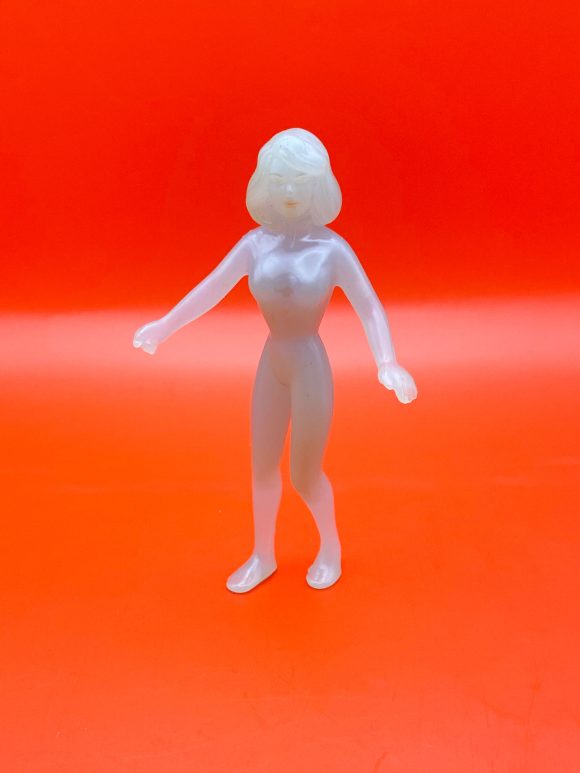 Invisible Woman – Happy Meal (McDonald’s, 1996). A rather cool toy to get with your cheeseburger or Chicken McNuggets, this static figure of Sue Storm Richards went from “invisible” as you see here, to (mostly) full color in cold water, or a trip to your freezer.