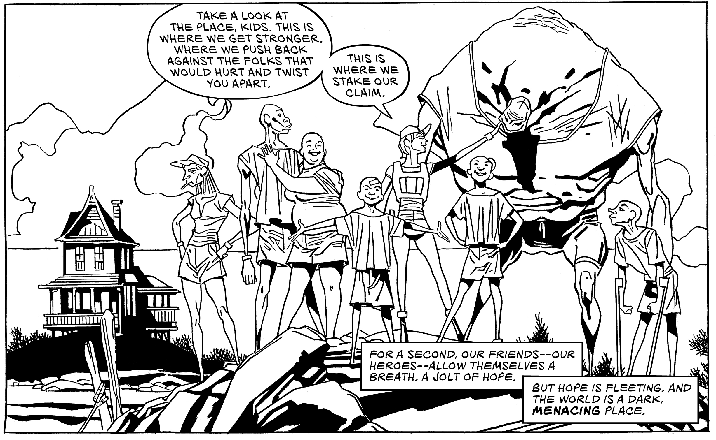 Sara: The story that precedes this one, “The Magic Wars,” is massively underrated for setting up a bleaker tone for the Legion so that this story could knock it out of the park. 5YL takes a lot of cues from Watchmen, but it succeeds because it’s still very much a Legion story. Looking back at the past from a dystopian future is very much what the middle-aged TFF is going through. This book was a big inspiration for that vibe.