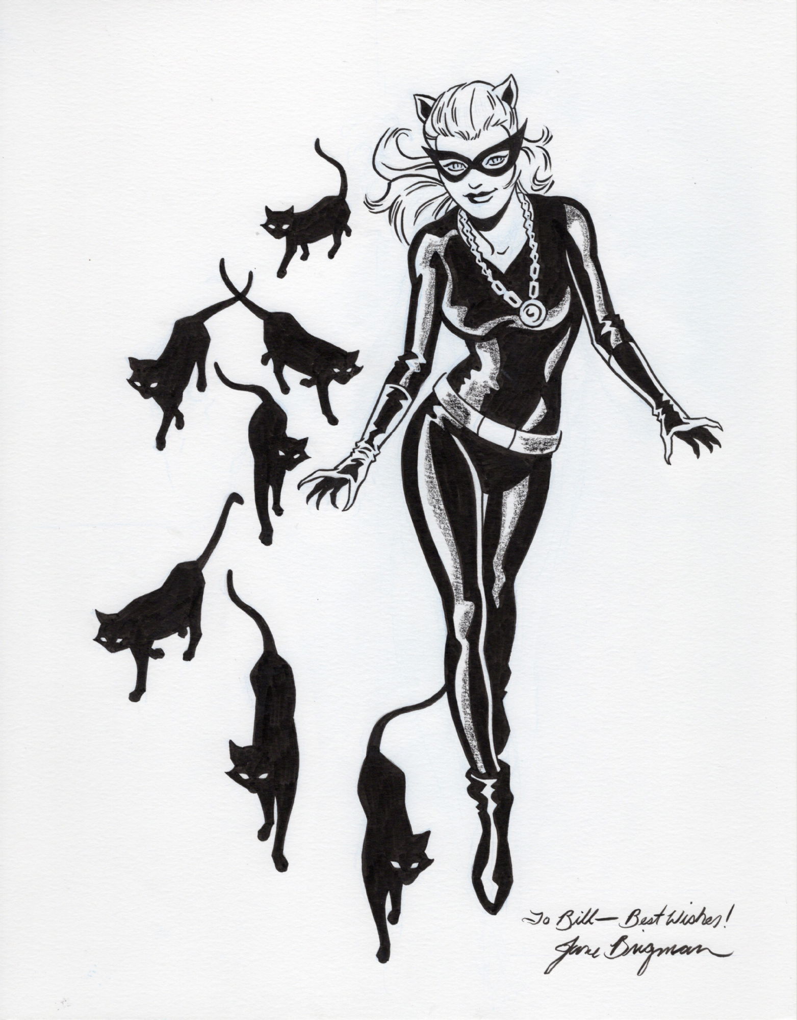 12. June Brigman. This beautiful and entrancing drawing of Julie Newmar as Catwoman was the result of an art trade between me and my friend, June Brigman. I definitely got the better end of the deal!