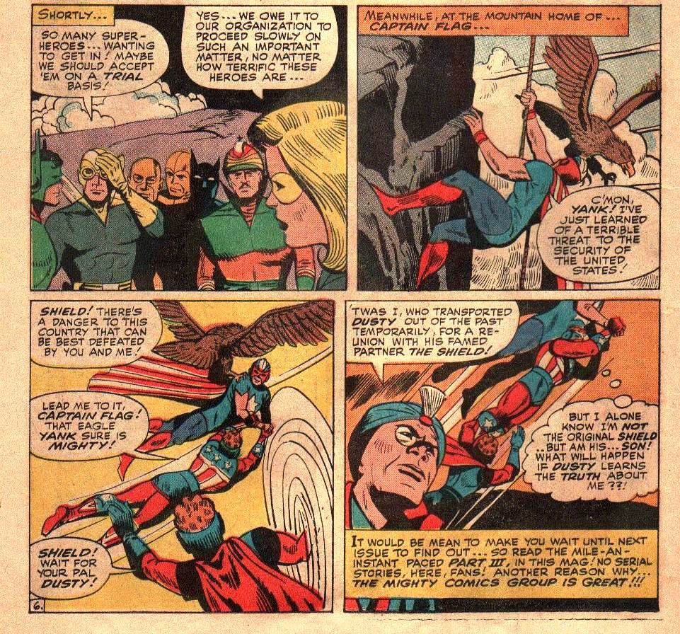 Captain Flag with Yank, along with the sudden appearance of Dusty, the original Shield’s sidekick!