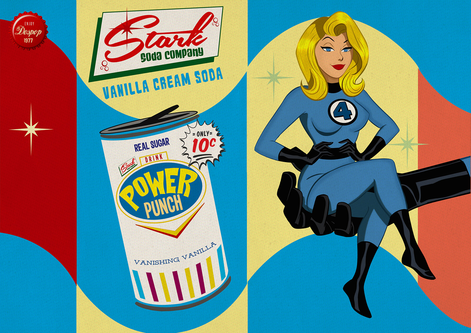 Now, dig the latest Stark Soda Company Flavor of the Week — Invisible Woman’s Power Punch Vanilla Cream Soda!