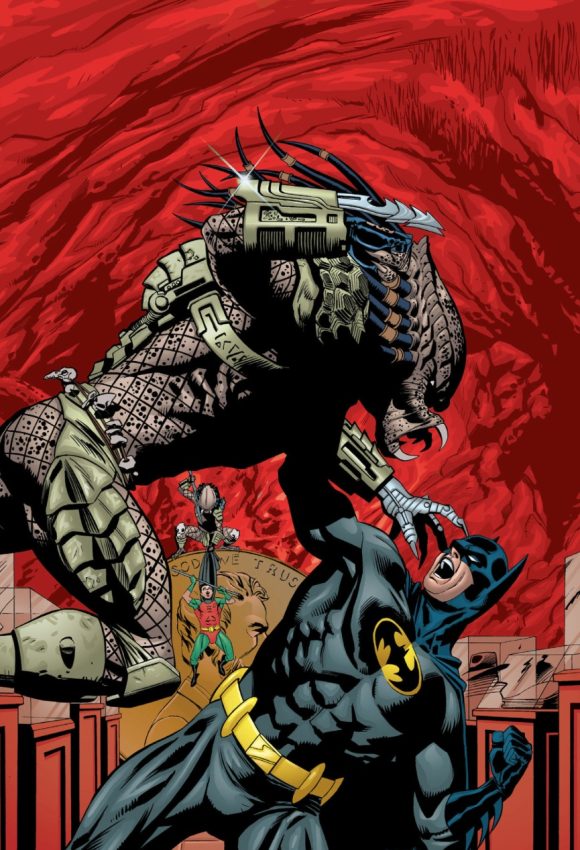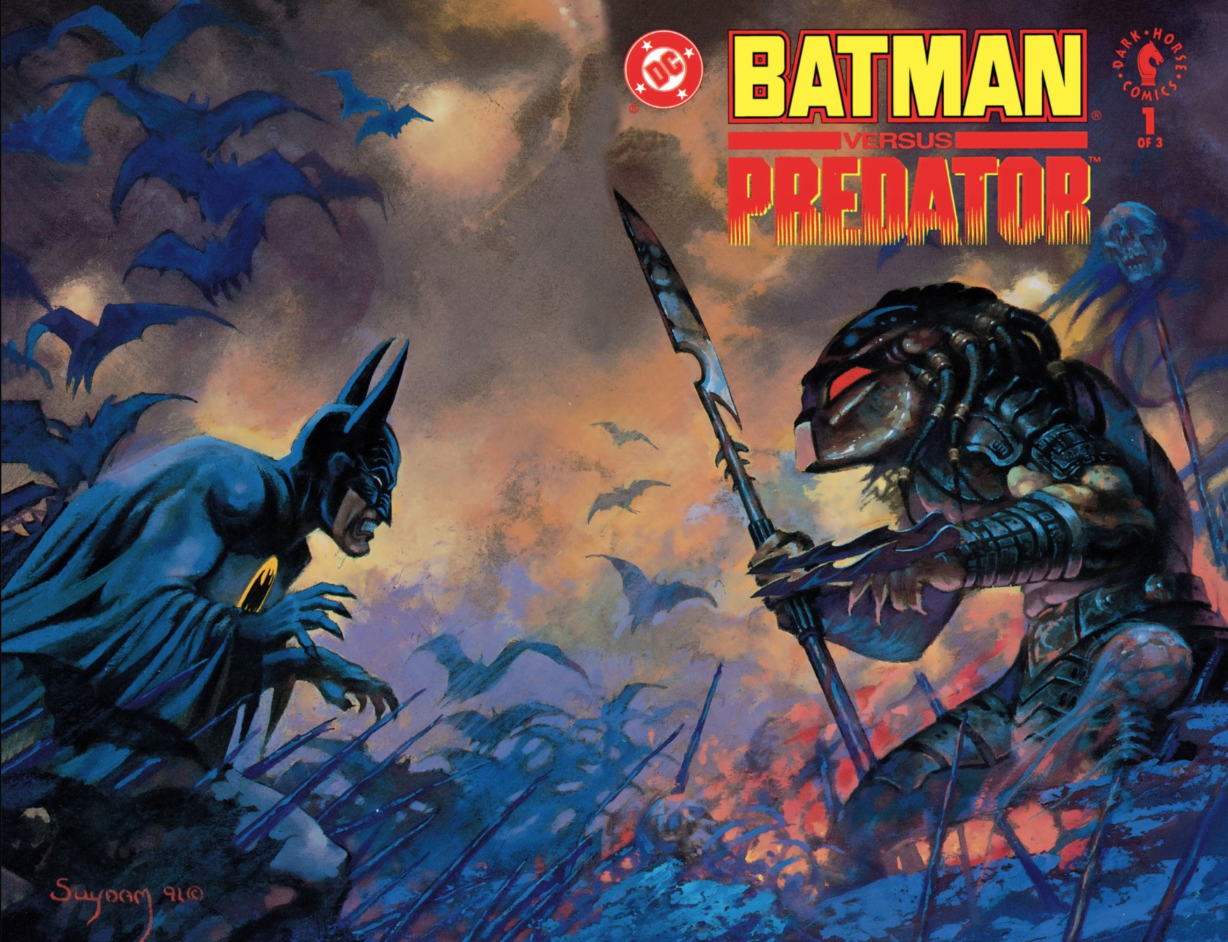 1. Batman vs. Predator (DC/Dark Horse, 1991). This was another unconventional crossover choice in 1991 that was a runaway success. Taking on a non-powered lawman from Mega City One was one thing, but fighting a threat from outer space? What would that be like in this era? In short, Batman gets his ass handed to him — then goes from one of his worst defeats to one of his greatest comebacks.