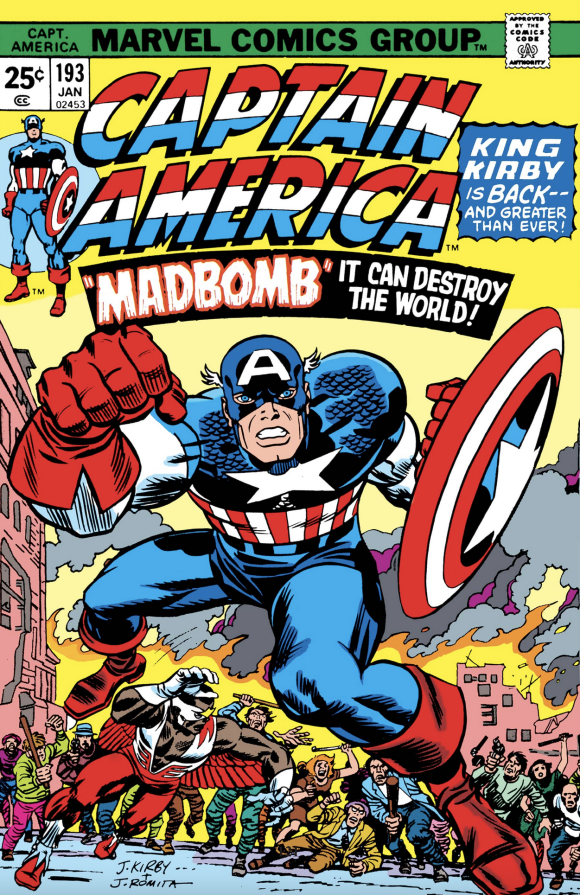 Comments From October: There were so many first-rate covers this month. But for sheer, bombastic comic-bookery, you can’t beat one of the King’s most beloved illustrations (adroitly inked by Jazzy John Romita). Jack Kirby returned to the character he co-created with a bang and this cover — complete with the daffy “MADBOMB” IT CAN DESTROY THE WORLD! — has been a Marvel mainstay ever since. Zero wonder it’s had eternal life on merchandise. Wouldn’t you just love for this to get a Facsimile Edition?