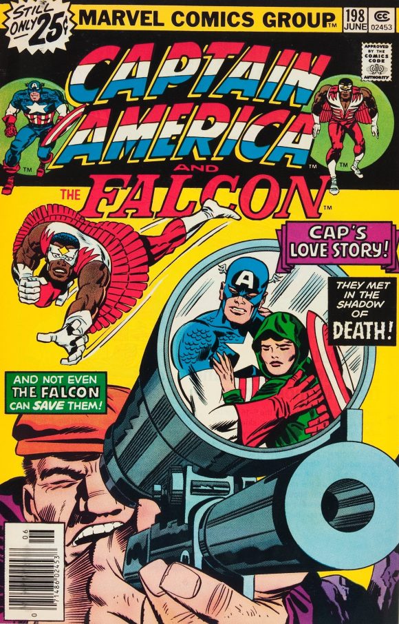 10. Captain America #198, Marvel. This can’t be the first time the target’s-face-is-in-the-scope thing was done, can it? No matter, its a really effective use of the device. That perspective on the gun barrel! The assassin’s hands and face! If only the Falcon didn’t look quite so awkward. But, hey, even the King wasn’t perfect.
