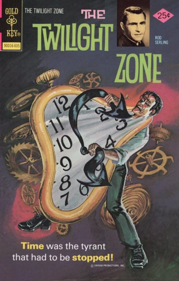 8. The Twilight Zone #80, Gold Key. That is a classic, George Wilson-style cover, only there’s no info out there I can find to identify it as such. The face isn’t quite as polished as Wilson would make it, so perhaps it was just someone aping his style. Either way, I dig it a lot, especially the way the dude is struggling to hold back the big hand from stabbing him in the throat. Also, any time you have surrealistic clock imagery in this context, it says “Twilight Zone.”