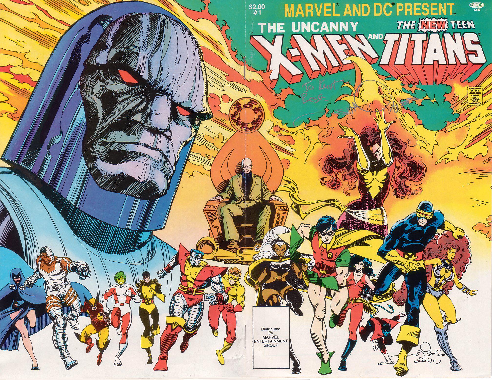 2. The Uncanny X-Men and the New Teen Titans (1982). This may be DC and Marvel’s greatest example of pairing bestselling franchises of both universes that actually worked. This tale by Chris Claremont, Walt Simonson, and Terry Austin is nearly flawless. Having Darkseid and Dark Phoenix as the threats made this outing much larger in scale than the three prior crossovers.