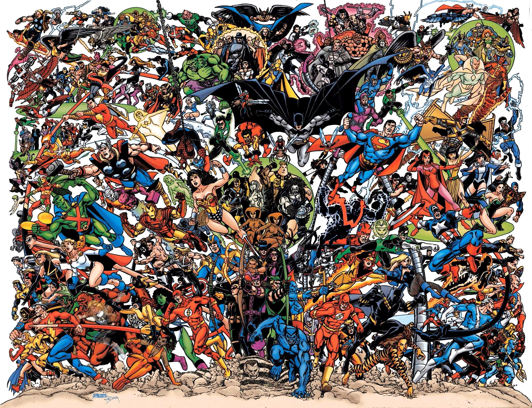 Busiek and Perez found a way to incorporate every character who had been an Avenger or JLA member into a four-part, prestige-format miniseries (soon to be re-released as Facsmile Editions) and crossed time and space to do just that. The story pretty much ignored all the developments of the prior DC and Marvel jaunts to bring you something that felt fresh and new to the crossover concept.