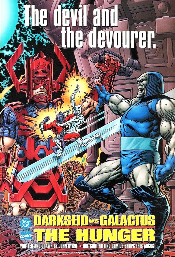 9. Darkseid vs. Galactus: The Hunger (1995). Can villains carry a crossover story? It really depends on which two you pick, doesn’t it? It also helps if one of the villains has something the other villain really wants and will fight to the death to keep it for himself. Oh yeah, it doesn’t hurt if both villains are Jack Kirby creations either. John Byrne’s first crack at an intercompany crossover poses the question: What if Galactus came for Darkseid’s home planet of Apokolips? Add Orion and Silver Surfer to the mix, and you get a tale that entertains you from cover to cover.