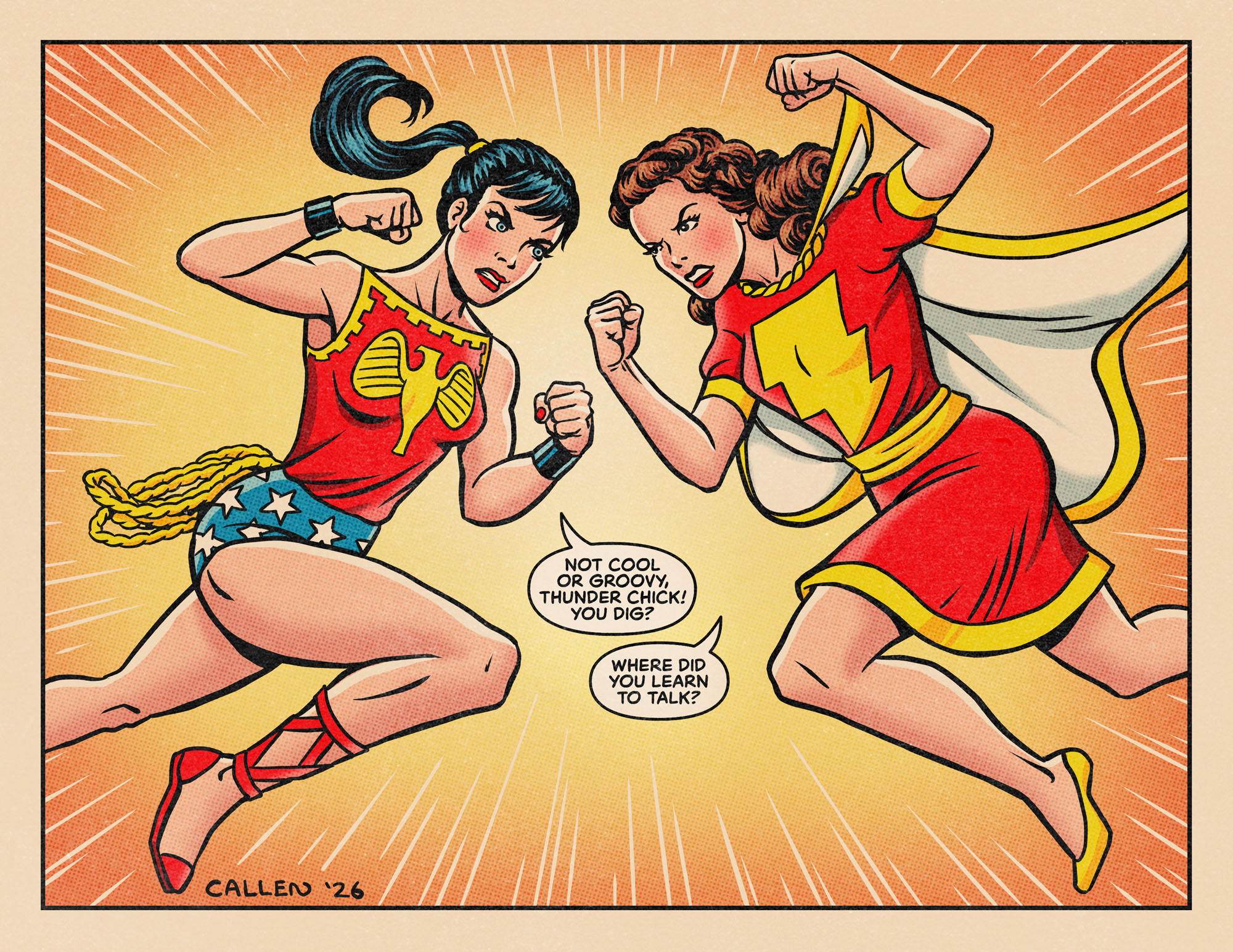 When a commission came along that involved Wonder Girl, I was happy to comply. She’s facing off against Mary Marvel, another character I’ve long liked. It was fun to draw them together!