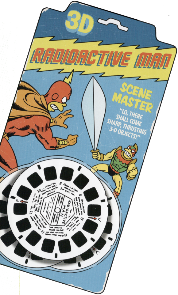 I showed examples of some of those things in that earlier column, but there’s so much more from Paul’s foreword. So, to give you an idea of what sort of Radioactive Man collectibles fans might find at the Android’s Dungeon & Baseball Card Shop, the Springfield Bi-Mon-Sci-Fi-Con, or in the closet of Bart’s bedroom, here are the remaining goodies!