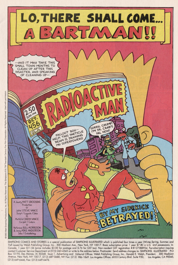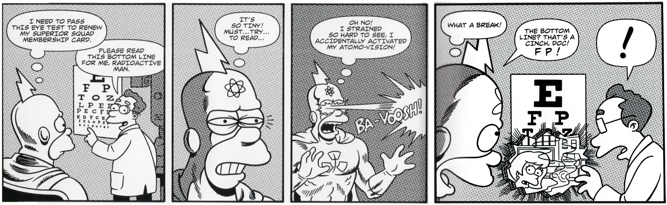 It’s well known that Bart Simpson’s favorite super hero is Radioactive Man, and in The Simpsons universe, the “Irradiated Crusader” appears to be on a par with Spider-Man, Batman, and Superman in popularity overall.