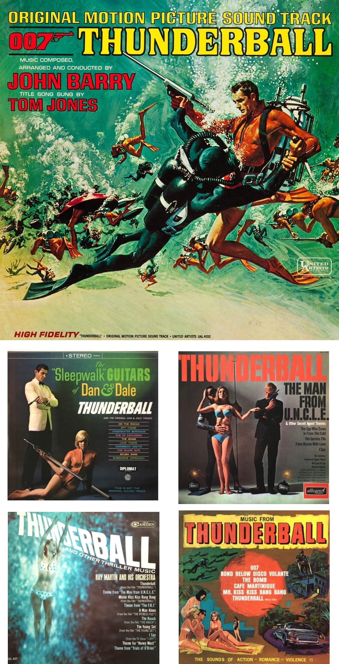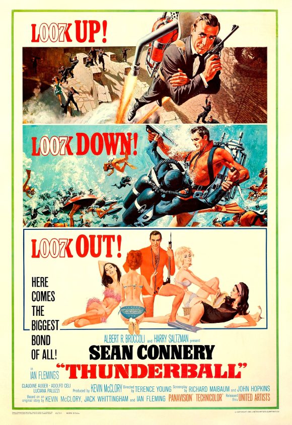 Thunderball’s excellent 1965 movie poster had top and middle paintings by Frank McCarthy and the bottom was the work of Robert McGinnis.