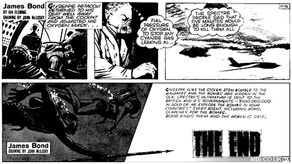 First two days of the Thunderball strip adaptation (#1066, December 11, 1961 and #1067, December 12, 1961). Script: Henry Gammidge. Art: John McLusky.