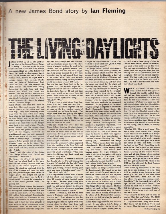Fleming’s short story The Living Daylights in The Sunday Times Magazine, February 4, 1962.