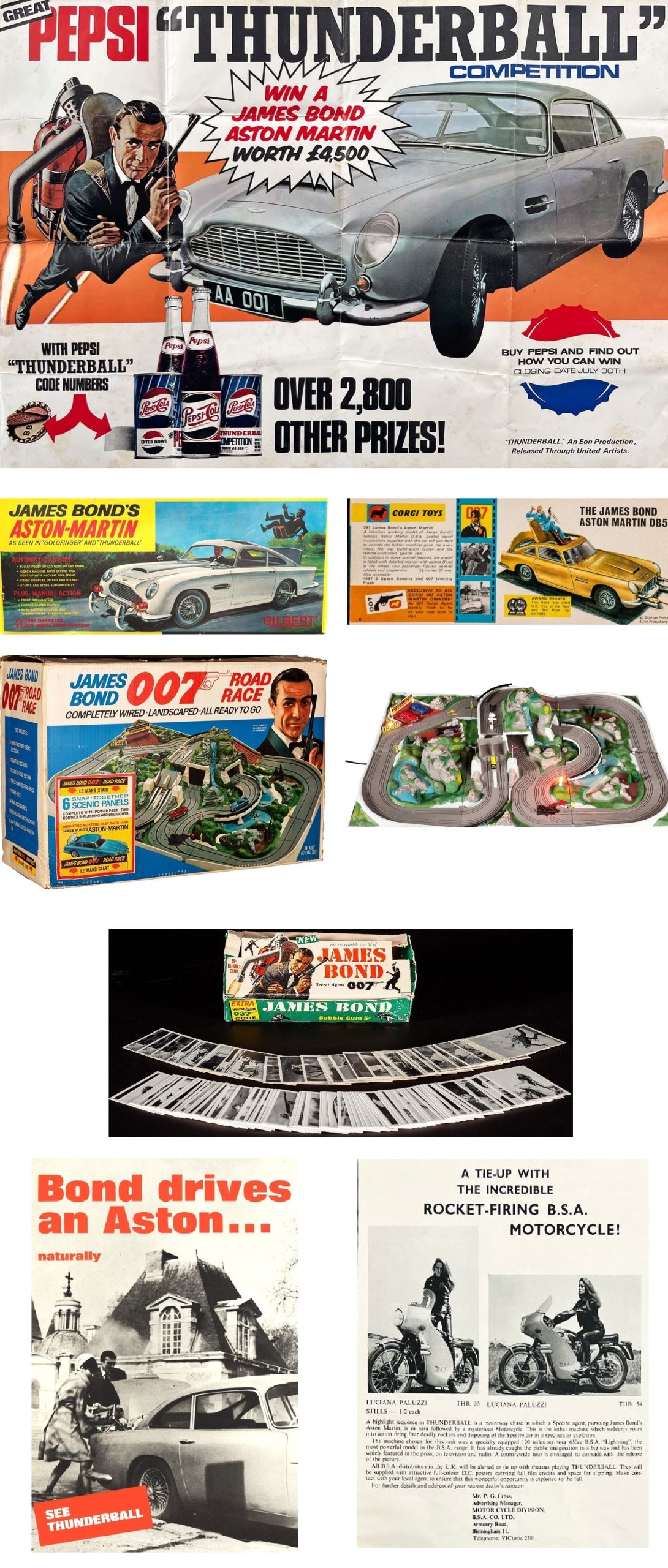 They say a picture’s worth a thousand words. If that’s so, here’s a whole dictionary. (And this is a just a miniscule amount of all the items released to tie in to Thunderball.)