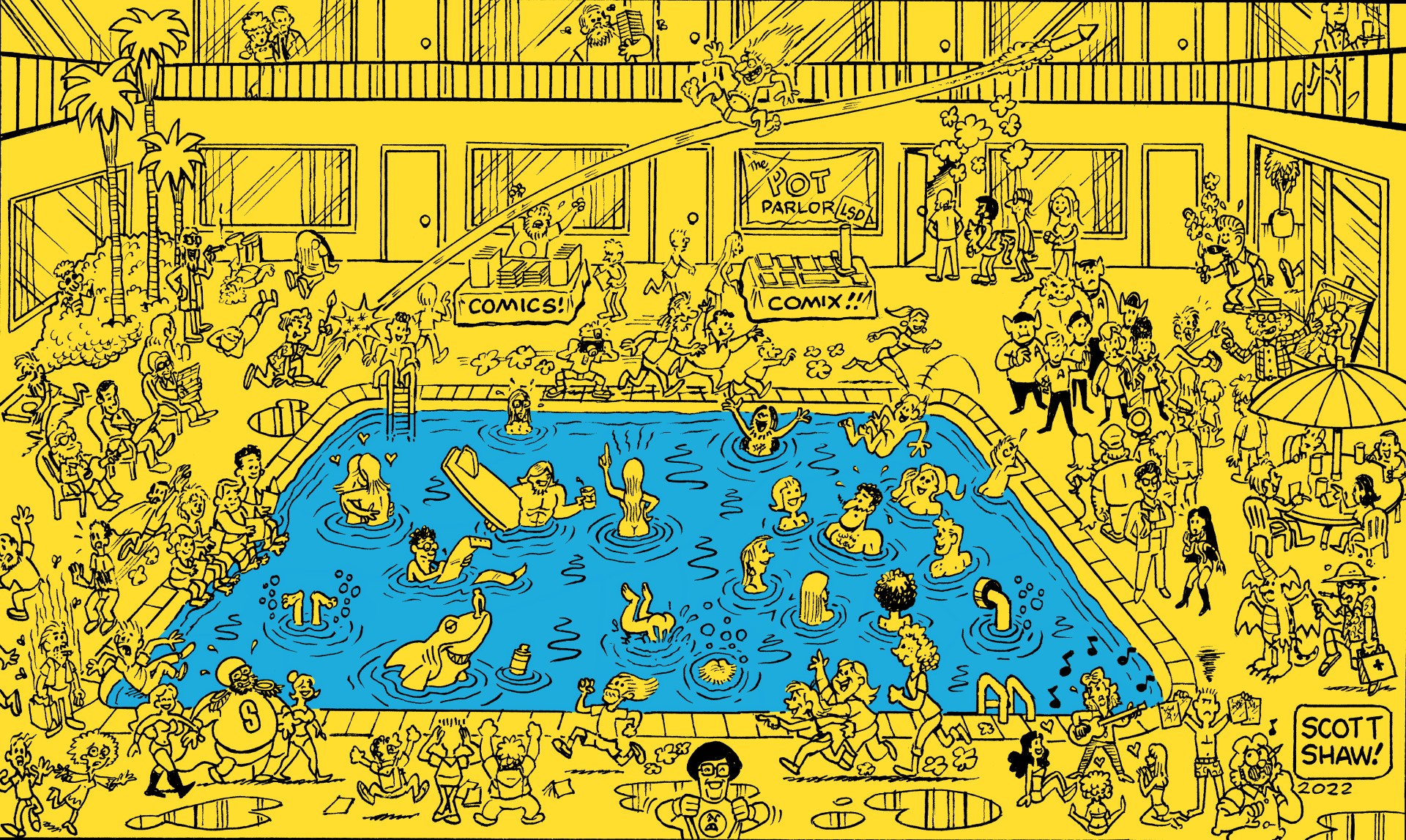 1. Great drawing–my eyes immediately went to Sergio Aragones in the pool!