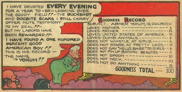 Soon, 19 year-old Abner Yokum agrees to become the spokesperson for all-that-is-good-in-childhood. Li’l Abner’s speeches are very successful and soon young’uns all over are turning their lives around!