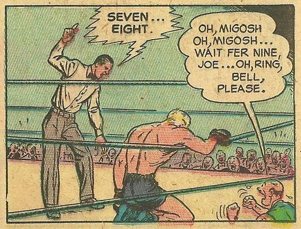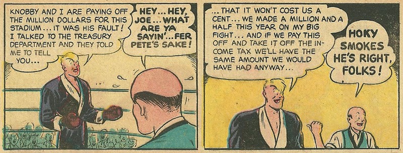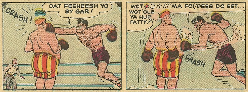This was fun! I hadn’t read a lot of Palooka and this story came off as something Damon Runyon might have done. And Humphrey reminded me of a fighter from a couple of years ago called “Butterbean.” (“Pennyworth?” You don’t suppose…)