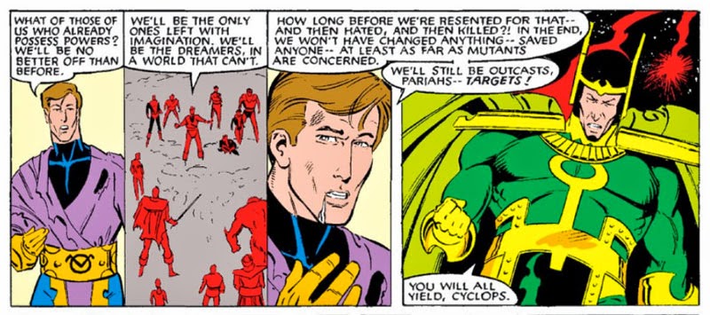 It turns out that the people who already had superpowers won’t lose their ability to dream. Cyclops gives a pessimistic little speech.