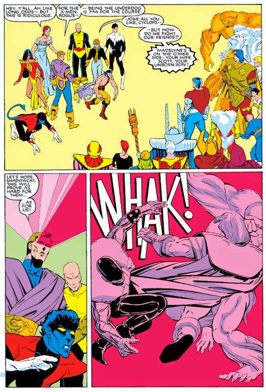 First things first, who is fighting whom? As with most Chris Claremont-written X-Men books, there are lots of characters, dense dialogue, and interweaving stories. I’ll summarize to the best of my humble ability.