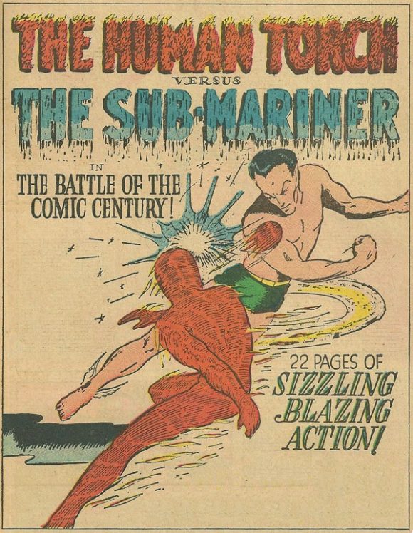 Kerry kicks it off with the first billed “Battle of the Comic Century” — the Human Torch vs. the Sub-Mariner in 1940’s Marvel Mystery Comics #9.