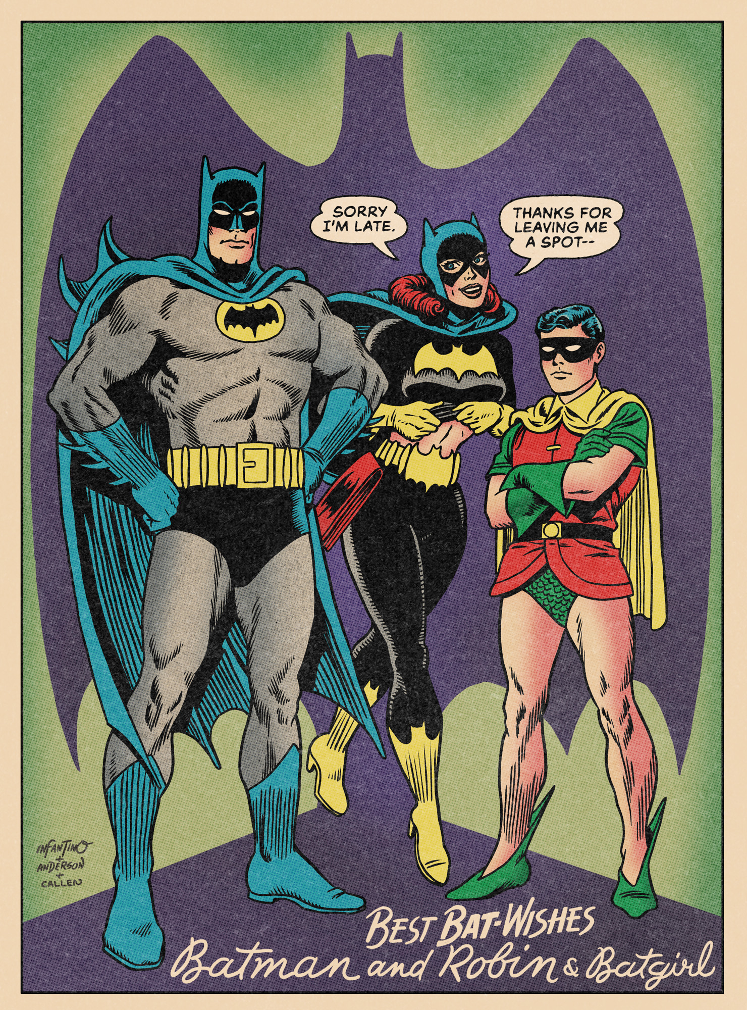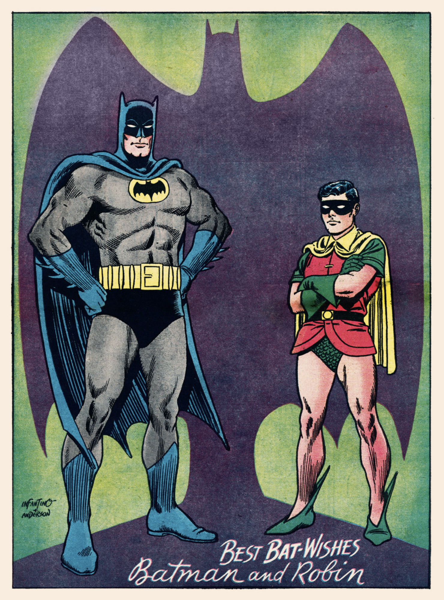Whenever I see this old, wonderful pinup of the Dynamic Duo by Infantino/Anderson, I usually think, “Hmmm, they could have fit in one more character, right between ’em.”