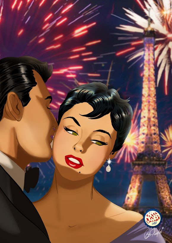 1. Is the pair in front of the Eiffel Tower Bruce Wayne and Selina Kyle or James Bond and one of his lovers?