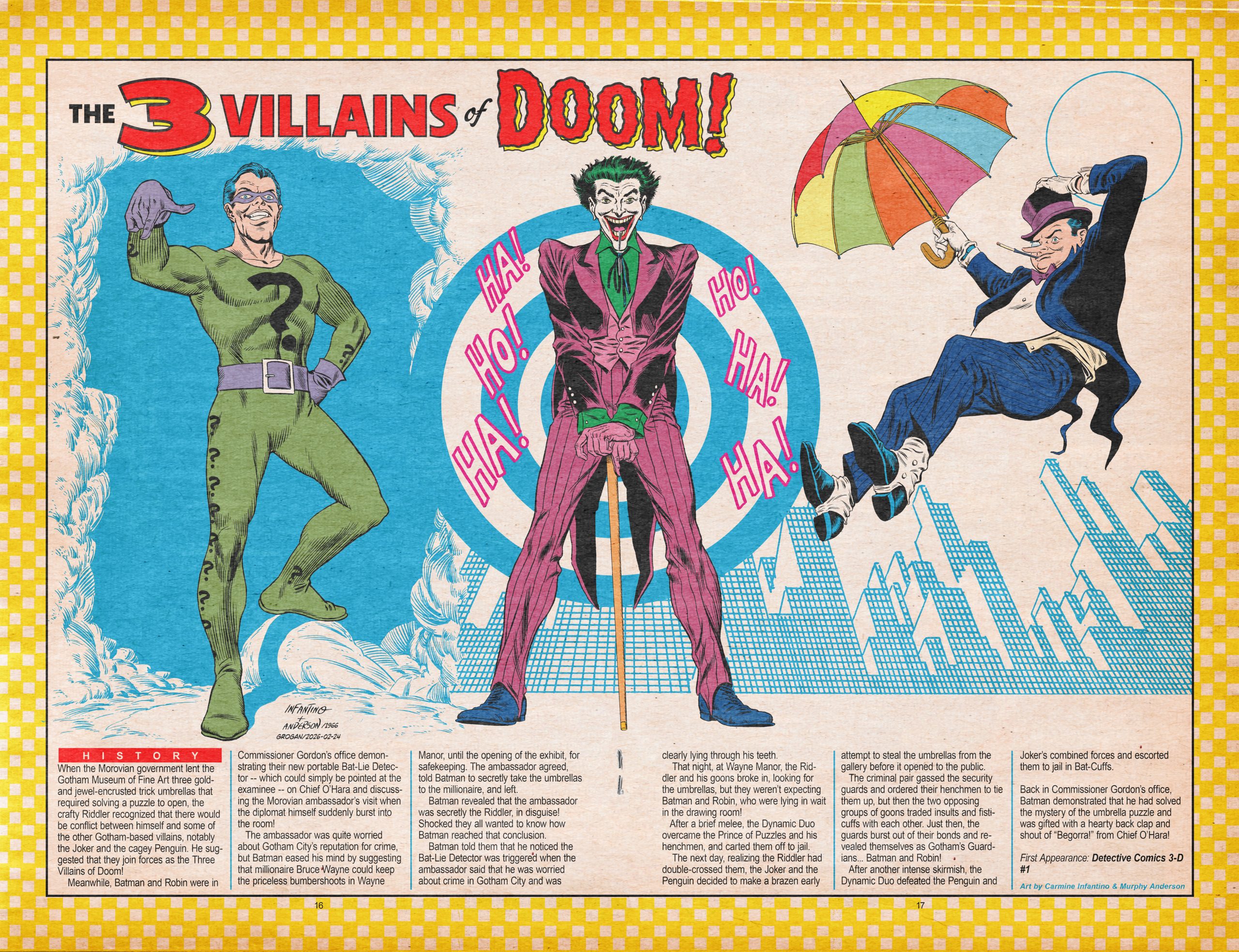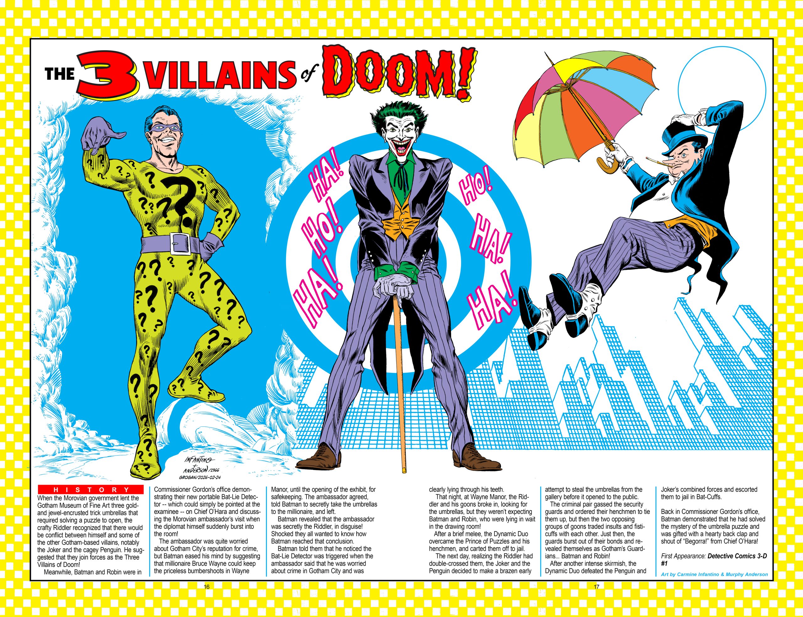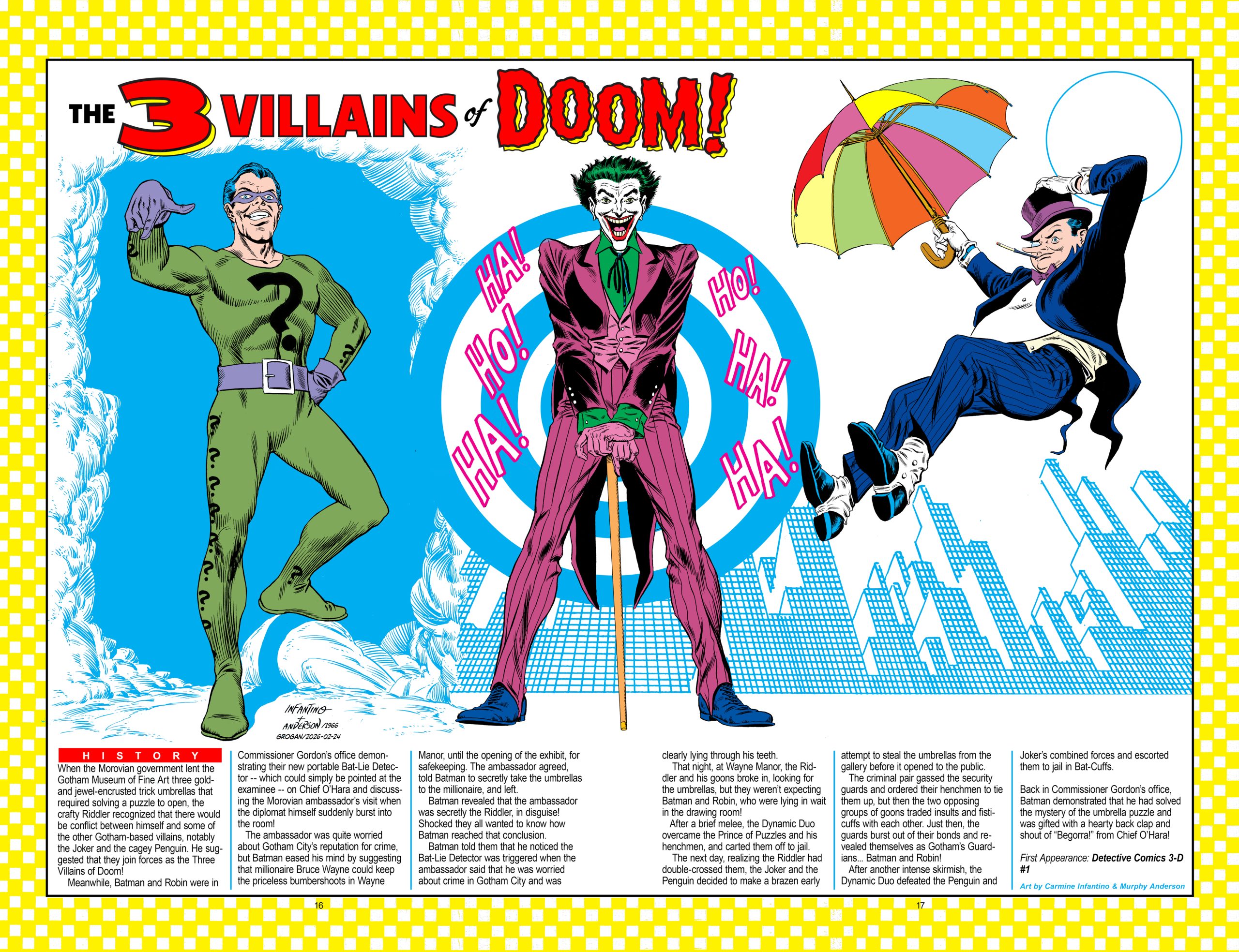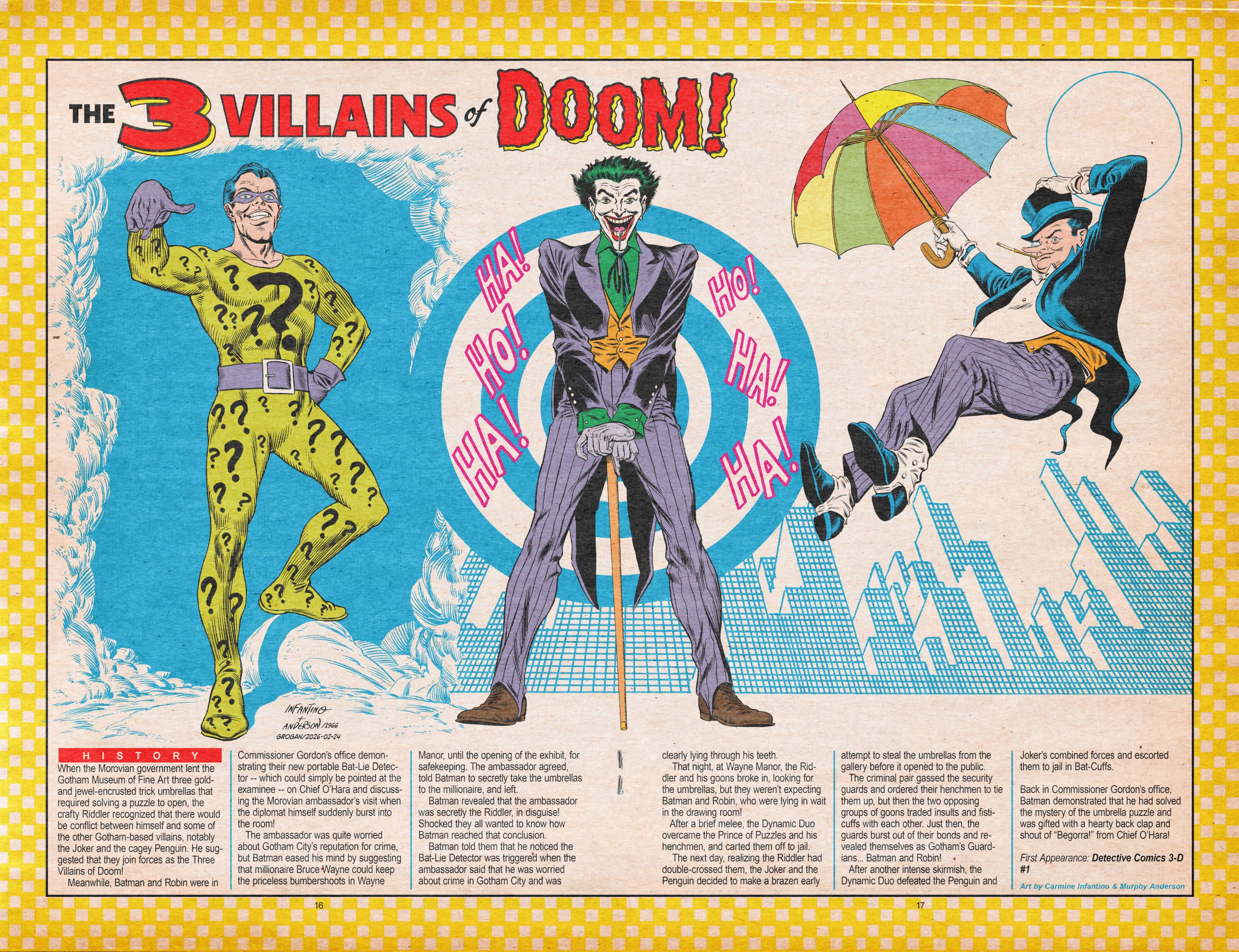 Welcome to BATMAN PINUPALOOZA, a 60th anniversary celebration of the seven seminal 1966 Batman pinups by penciller Carmine Infantino and inker Murphy Anderson that in large measure became the definitive versions of the Dynamic Duo and their venal villains for years to come.