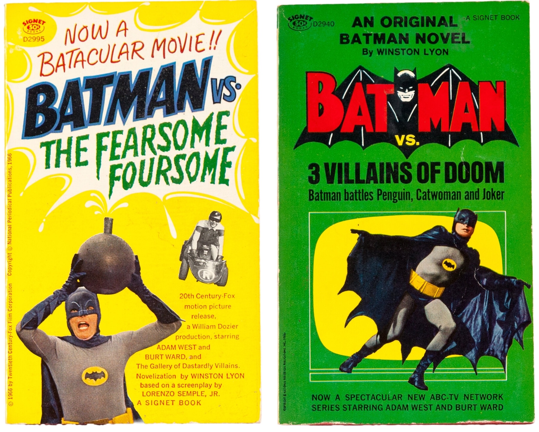 That’s when Dan reminded me that there was a novel by Winston Lyon (the pen name of author/comic-book scribe William Woolfolk) featuring the Joker, Penguin, and Catwoman titled, Batman vs. 3 Villains of Doom, which accompanied the writer’s adaptation of the 1966 Batman movie. What if I borrowed that name? Problem solved!