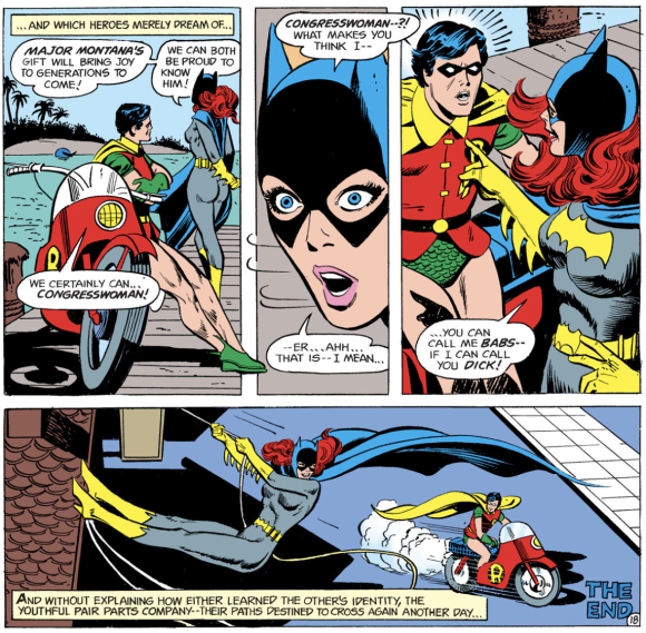 It’s never explained how each reached their conclusions, but then it didn’t need to be: In two adventures in a row, Dick and Babs happened to be in the same place outside Gotham, and Robin and Batgirl happened to show up at the same time. Given how long they’d known each other, it only made sense they’d have an epiphany. They are, y’know, supposed to be smart people.