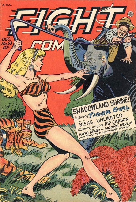 As an aside, there were TONS of “jungle women” in Golden Age comics (such as Tiger Girl, as seen on this 1947 cover of Fight Comics #53, by the Iger Shop and Joe Doolin):