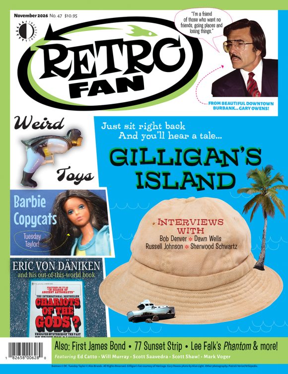 It’s so much more than a 3 hour tour, as Mark Voger takes us back to Gilligan’s Island! Check out the strange side of fun with Weird Toys by Scott Saaverda. Take a drive down 77 Sunset Strip with Will Murray, and then from Beautiful Downtown Burbank: it’s Laugh-In’s Gary Owens! Then we look back at ancient astronauts and the phenomena of Chariots of the Gods, and its effect on the pop culture we grew up with! Featuring columns by Andy Mangels, Scott Shaw!, Aaron Sultan and more. Edited by Ed Catto.