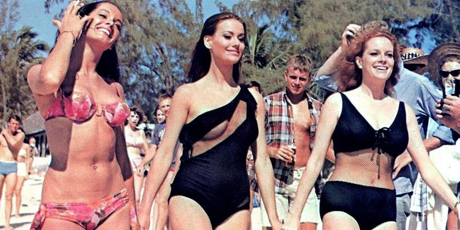 Martine Beswick, Claudine Auger and Luciana Paluzzi on the set of 1965’s Thunderball.